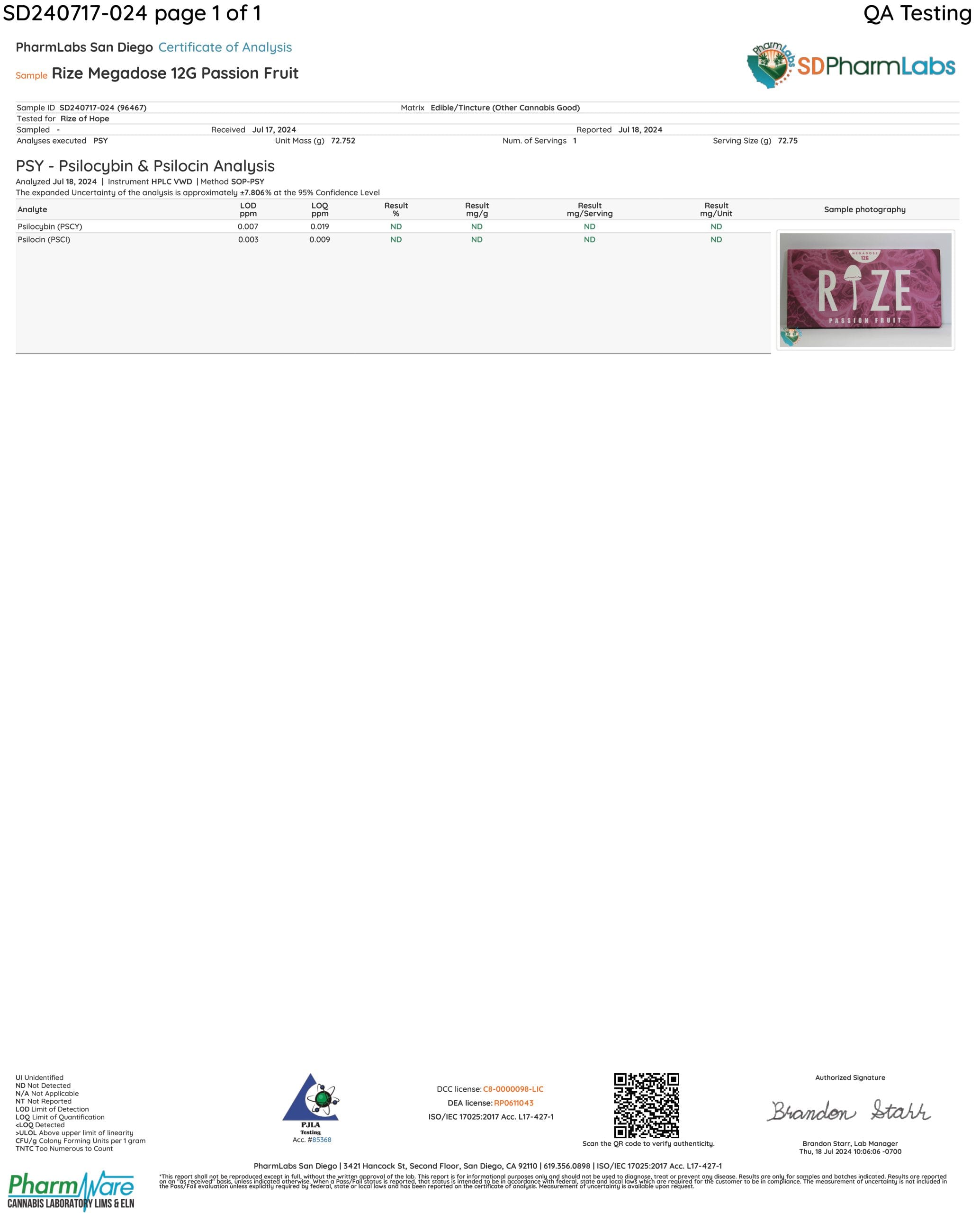Certificate Of Analysis